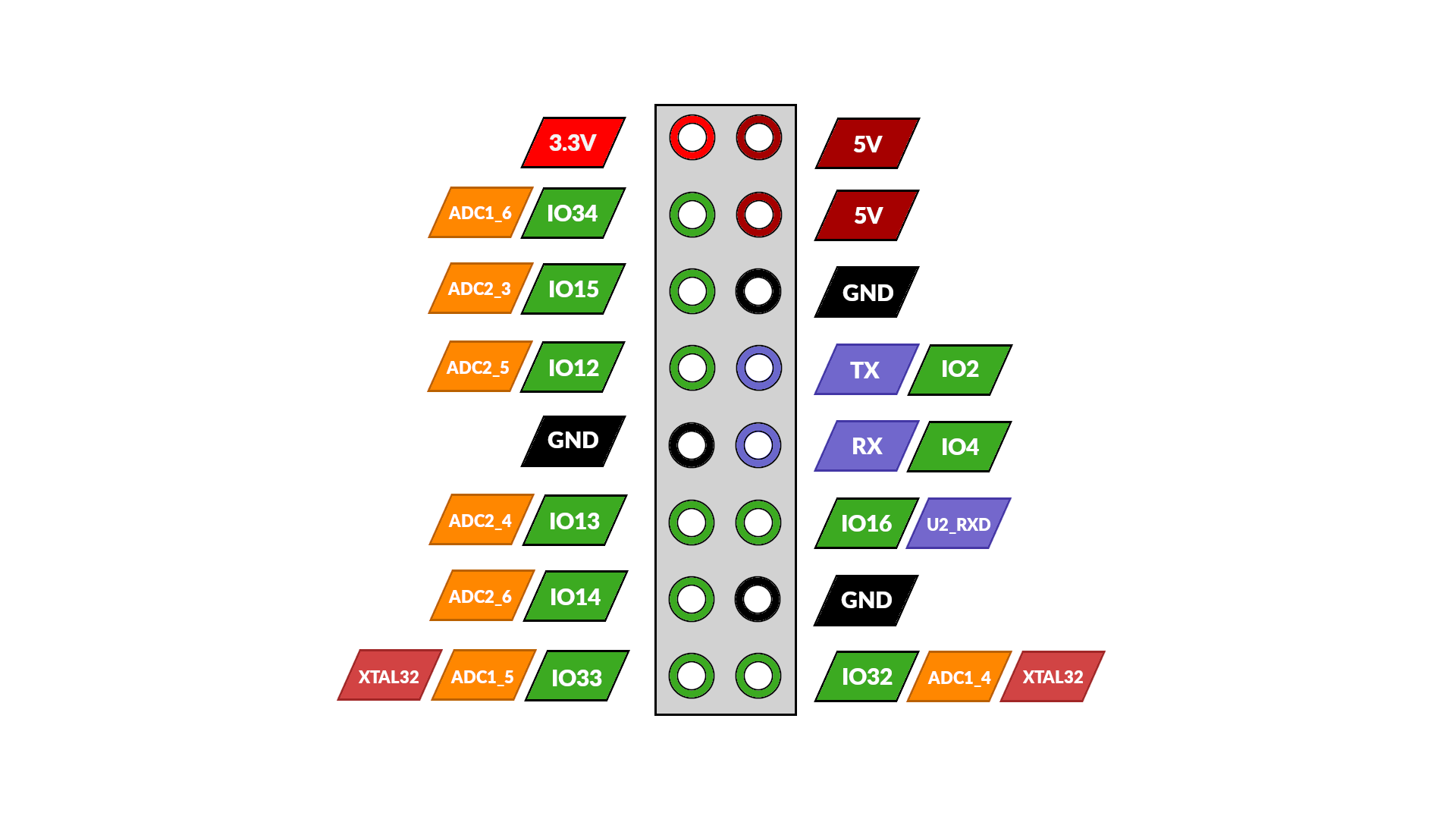 Pour rappel, voici les GPIOs disponibles :